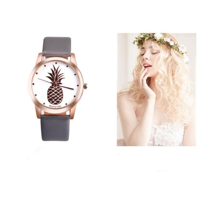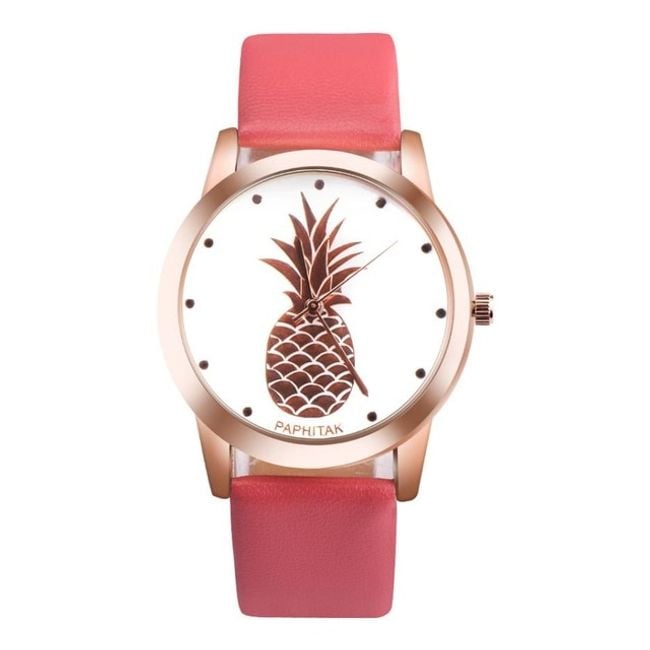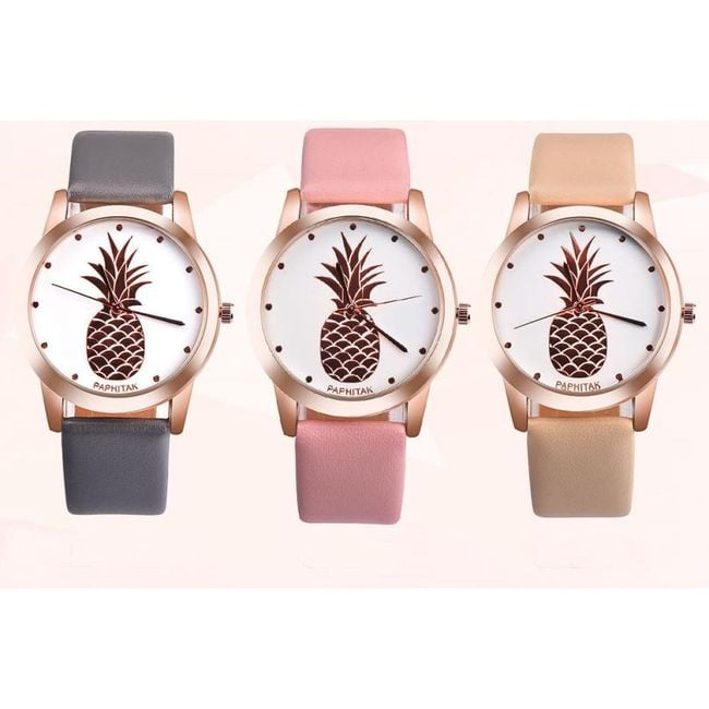 The dial of this watch is decorated with a picture of a pineapple. You can choose from many strap colours.
