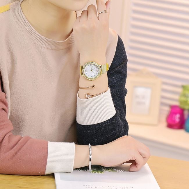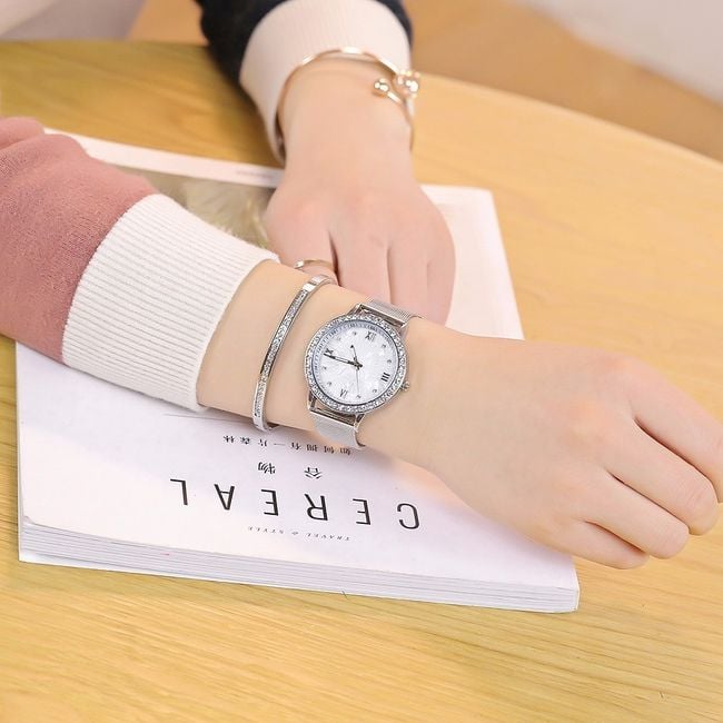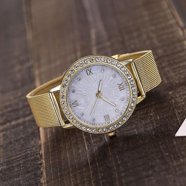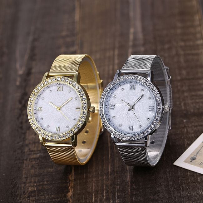 Elegant women's watch adorned with cut stones around the dial. You can choose from 2 variants.
