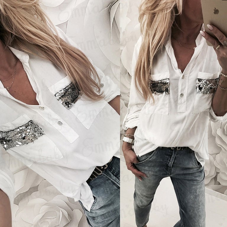 Women's White Blouse with Sequins