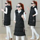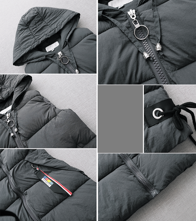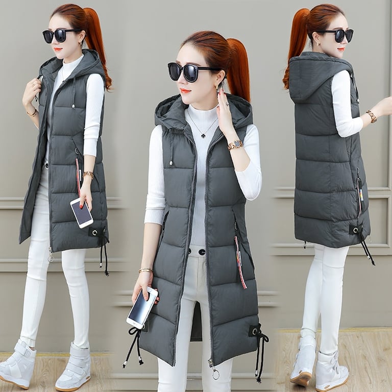The vest has a semi-fitted cut and features a practical hood.