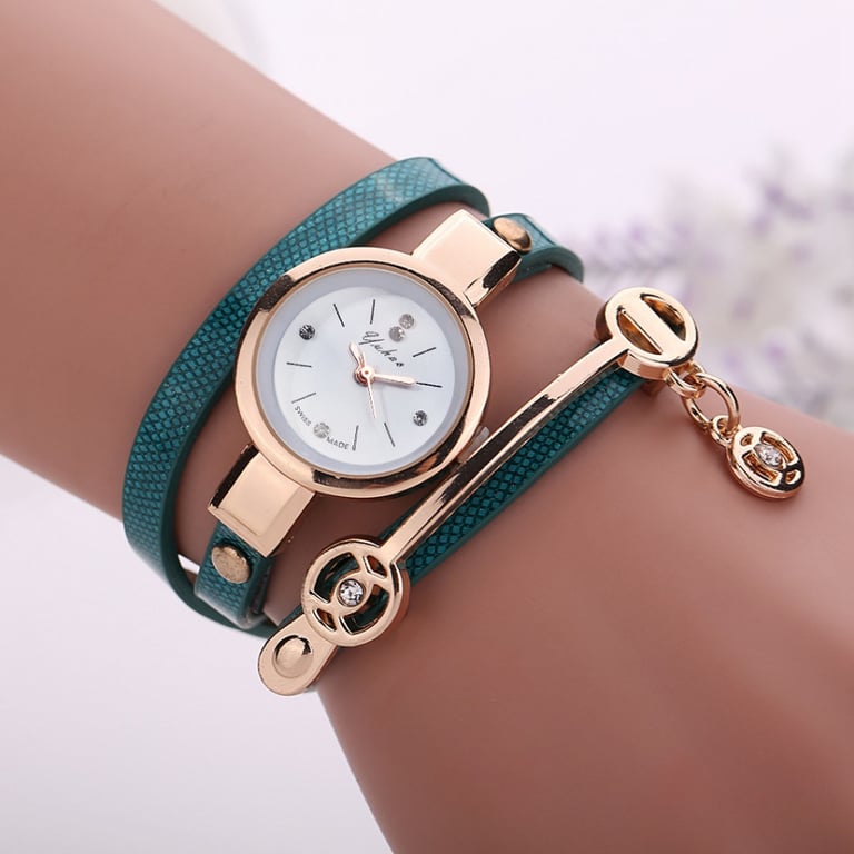 Women's watch with a snake skin pattern strap. Gold dial without numbering. Available in multiple variants.