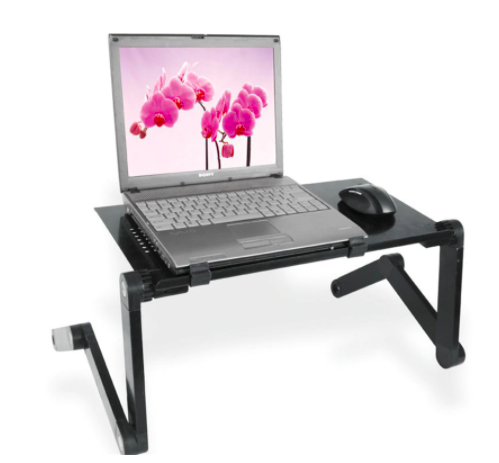 The folding table is a great addition to any home or office. The table has ventilation holes that every laptop user will surely appreciate. It offers more than 10 different positions that you can adjust it to. You can even use it on a regular desk, adjusting it so that your laptop is at eye level!