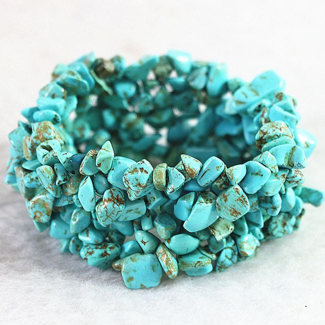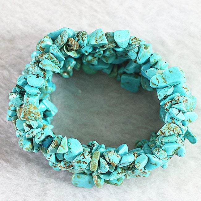 The women's modern bracelet features a robust appearance and is made up of small stones. It is available in turquoise colour.