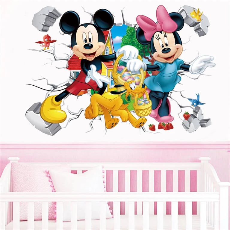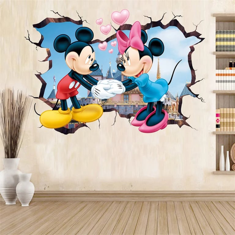 Large children's 3D wall sticker of Mickey Mouse and Minnie Mouse.