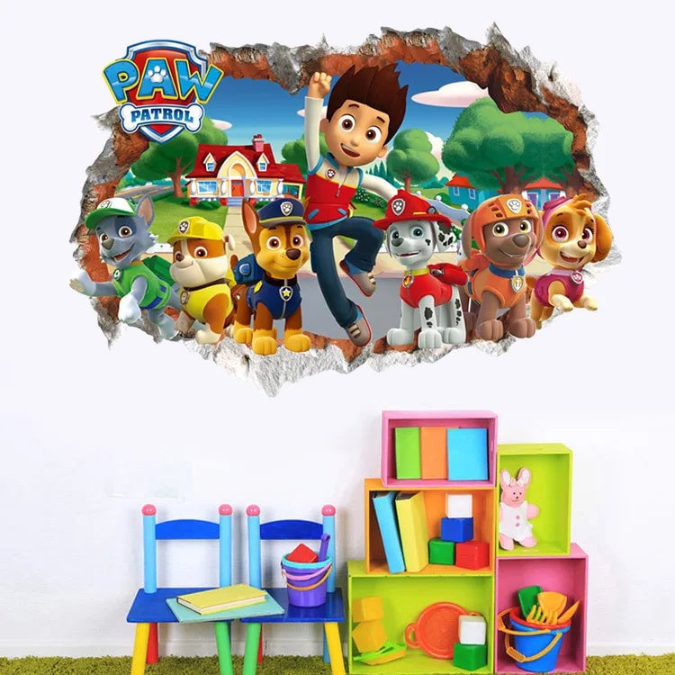 Original 3D PAW Patrol wall sticker featuring the PAW Patrol motif will transform every child's room into an adventurous world of their favourite heroes. The sticker creates a cracked-wall effect with the Paw Patrol characters peeking out, and becomes a striking feature in the interior. It is suitable for smooth surfaces such as walls, doors or furniture, and thanks to its self-adhesive design you can easily apply and remove it without damaging the surface.
