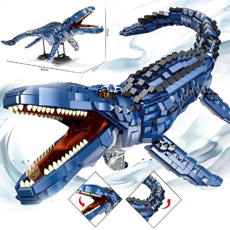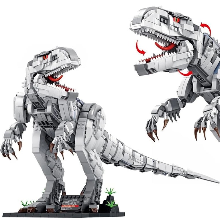 The dinosaur has movable limbs, head, tail, and an opening mouth.