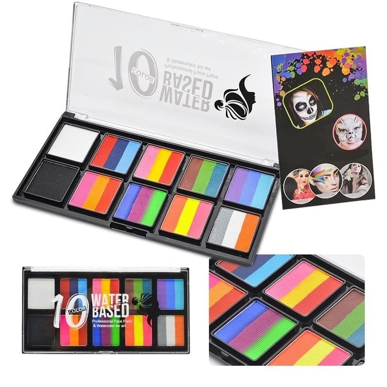 This palette set contains 10 easily washable colours. They are ideal for face and body painting. The high-quality formulation is perfect for achieving professional results. This palette is a must-have for every child and adult.