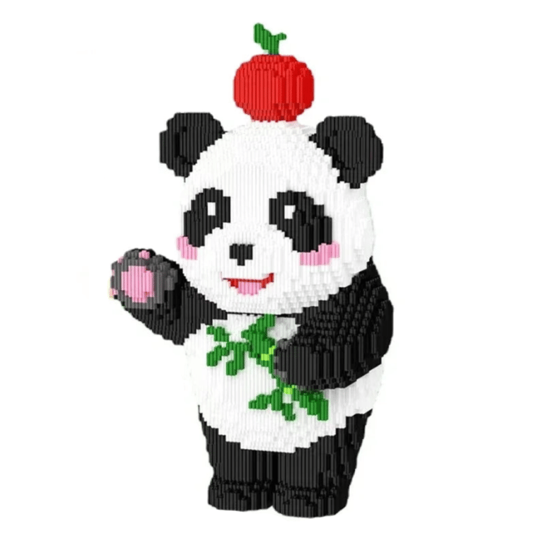 The large panda construction set is compatible with Lego.