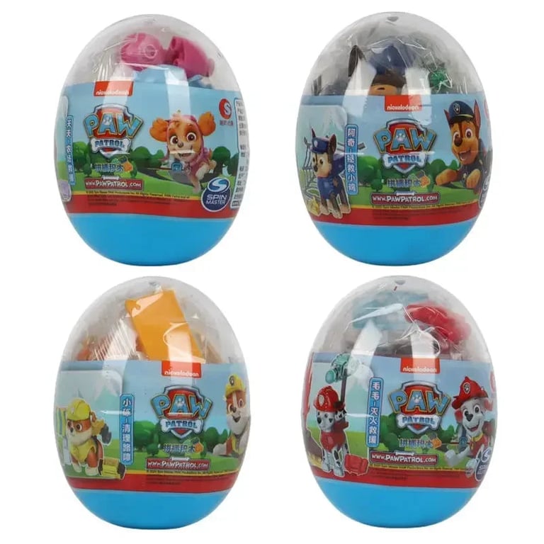 Paw Patrol packs contain collectible figurines of the beloved dog heroes Chase, Marshall, Skye and Rubble in a fun egg-shaped capsule. Each capsule hides a figurine with accessories and the possibility to assemble a small decoration – the surprise is always guaranteed. High-quality craftsmanship and colourful design will delight all Paw Patrol fans.