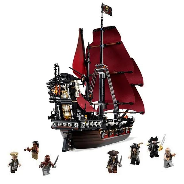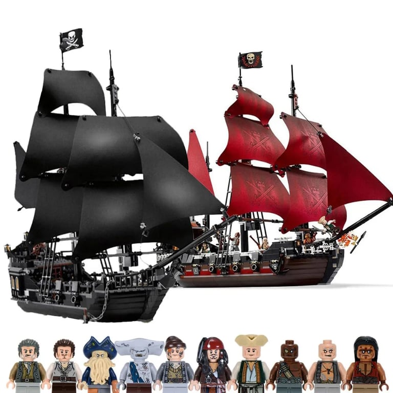 The black ship consists of 840 pieces and includes 6 figures.