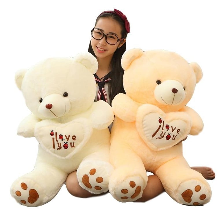 Large plush teddy bear with a heart and the inscription I love you.