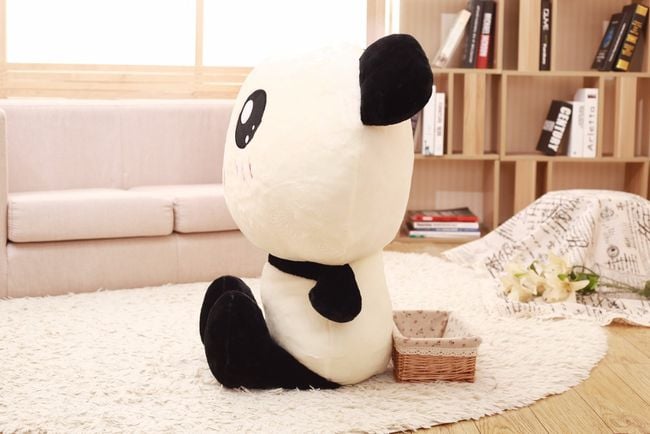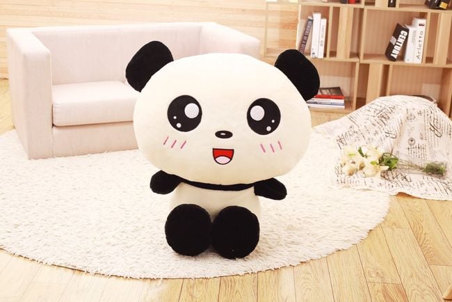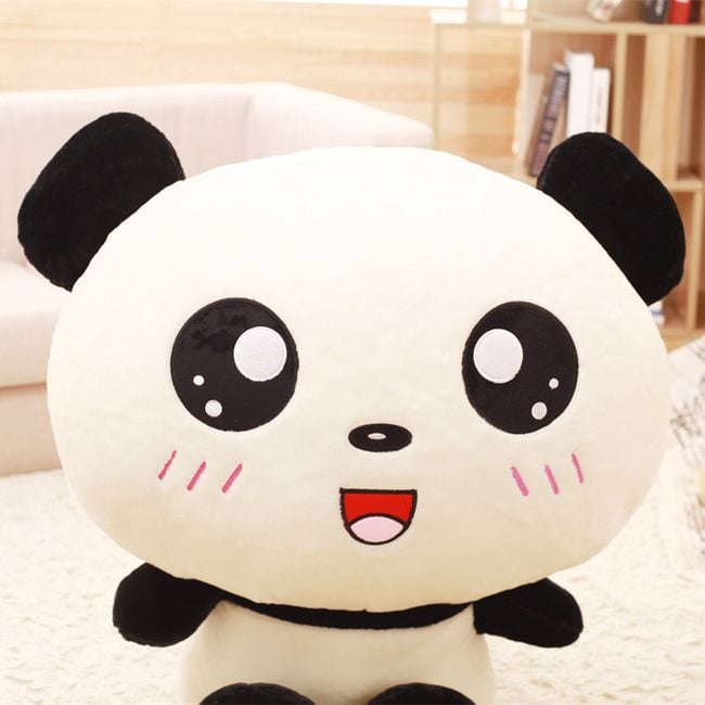Plush panda with a large head and a cute little face. It can be used as a toy or even as a pillow.