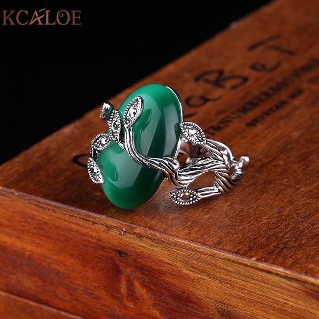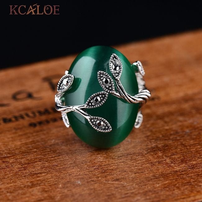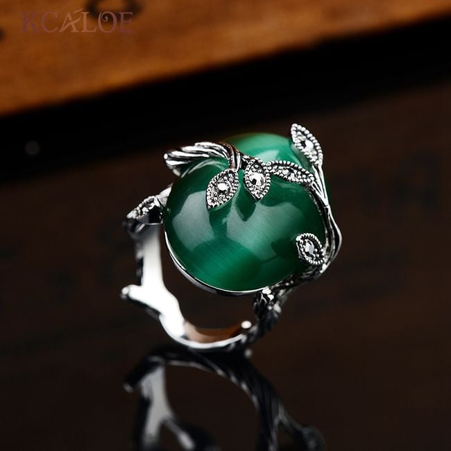 This ring will literally take everyone's breath away. It has such an original and ingenious design that you won't be able to take your eyes off it. The centerpiece of the ring is a large emerald green stone, embraced by silver branches with leaves. It will surely make a great gift – pleasing both nature lovers and fashion enthusiasts. You can choose from three sizes, which are detailed in the product specifications below.