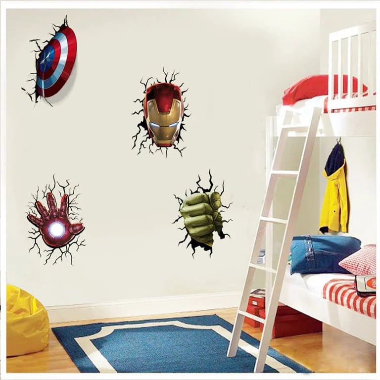 Large set of 3D superhero wall stickers.