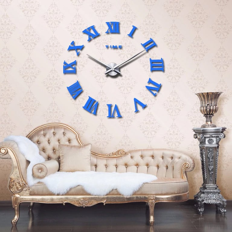 Large modern clock with Roman numerals. The glossy mirror surface gives the clock a luxurious appearance. Available in various colour options and two sizes.