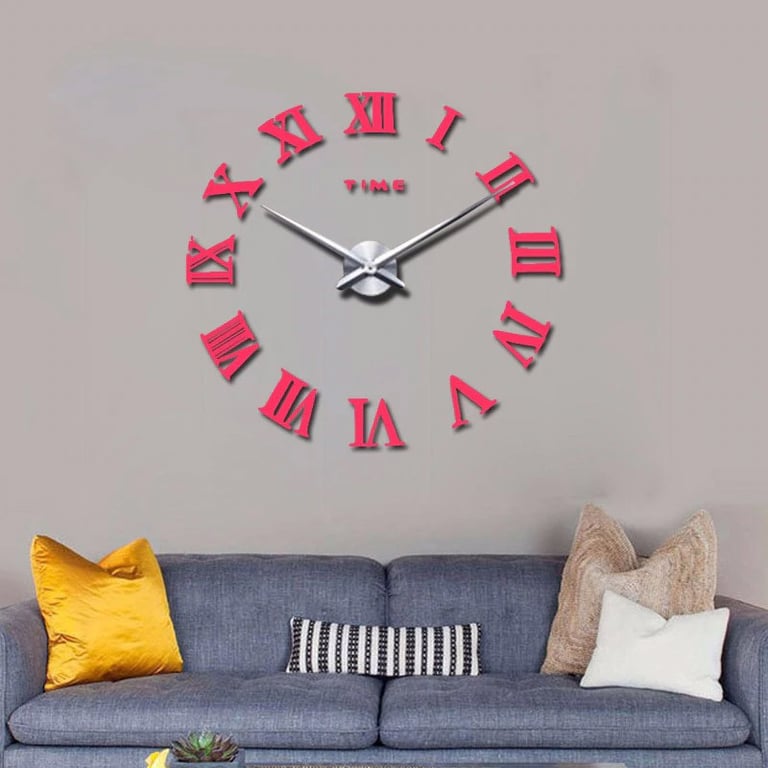 Large modern clock with Roman numerals. The glossy mirror surface gives the clock a luxurious appearance. Available in various colour options and two sizes.