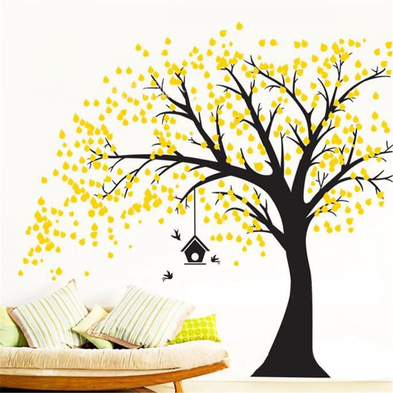 Large self-adhesive wall decoration. Deciduous tree with a large crown and a birdhouse.