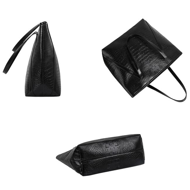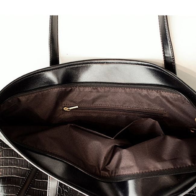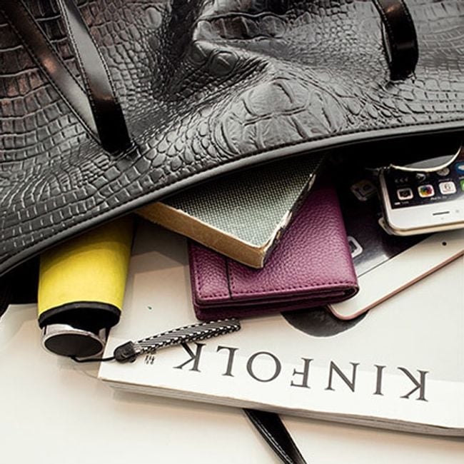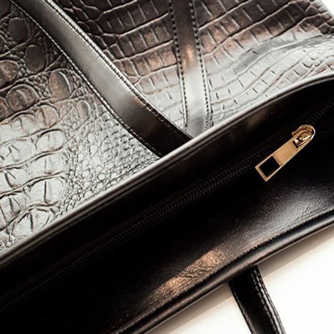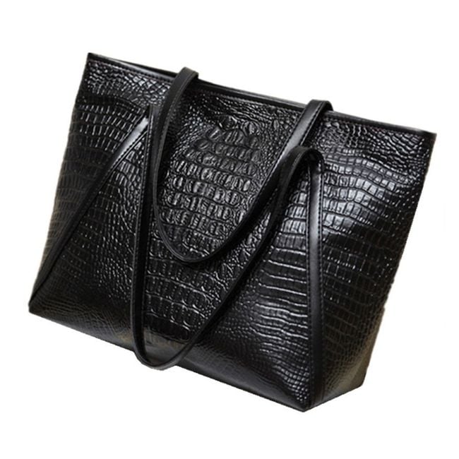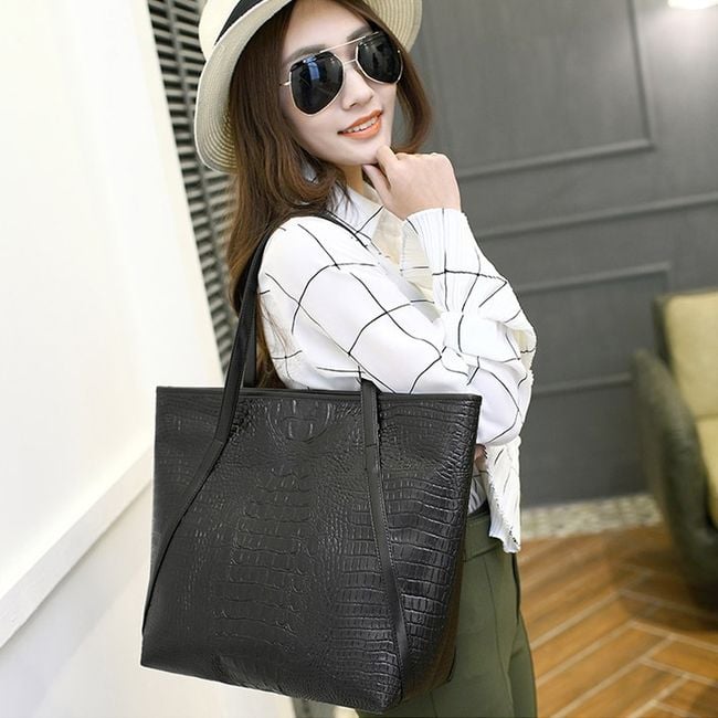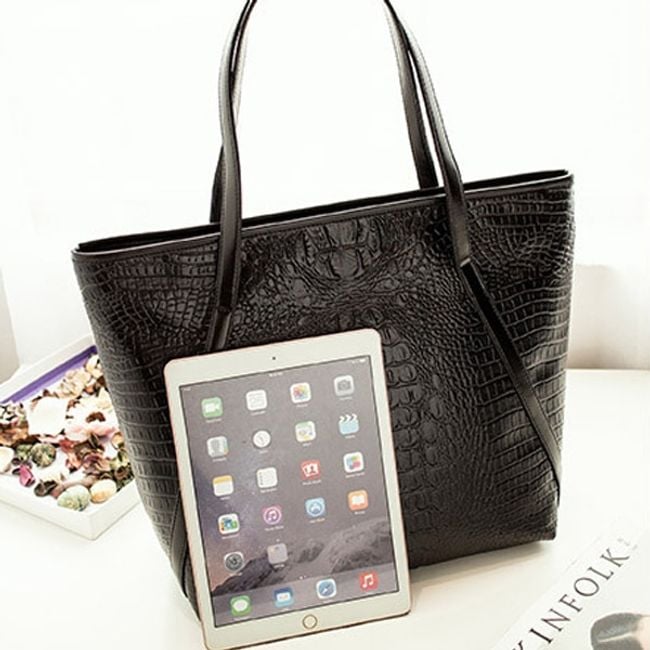 Large women's handbag with snake skin imitation - black