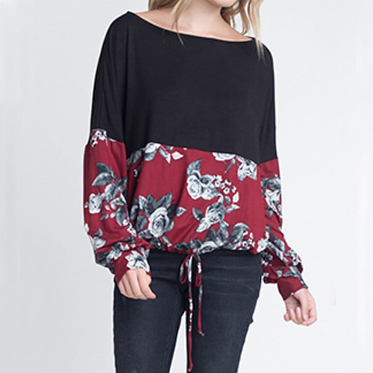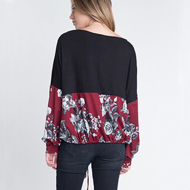Take a whiff of the design piece Larlita. This t-shirt features loose, balloon-like sleeves for comfortable wear, characterised by its traditional cut and unconventional print. Perfect for all flower lovers and floral motifs. Plus, the sizes are beautifully generous for all body types.