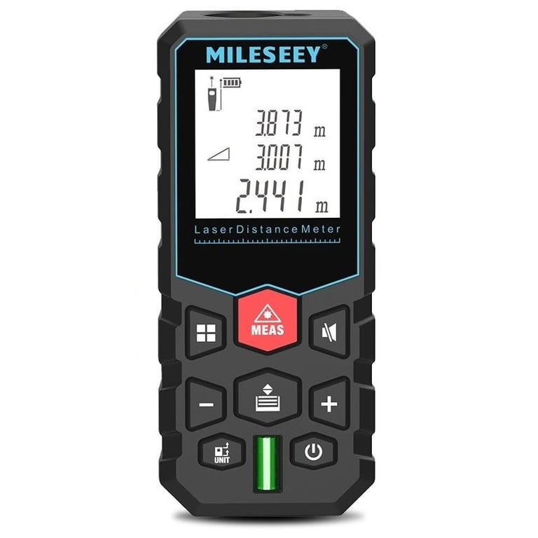 The laser distance measurer is a perfect tool for various measuring applications. With a measuring range of 100 m and high accuracy, it is ideal for all purposes, from DIY projects to professional surveying work. The rangefinder is powered by AA batteries.