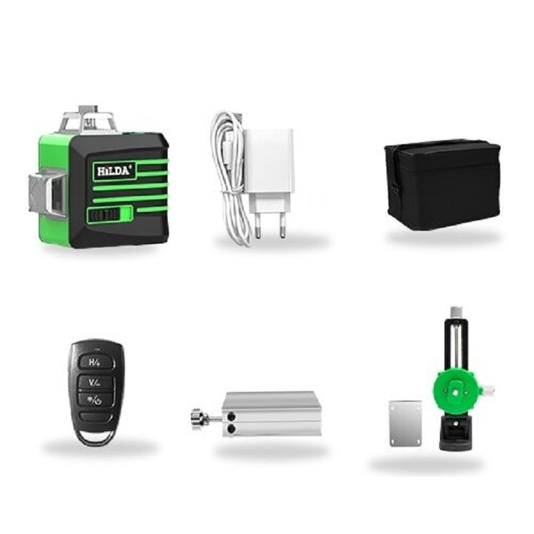 Package contents: 1x laser level, 1x bag, 1x power adapter, 1x wall mount, 1x lifting frame, 1x remote control