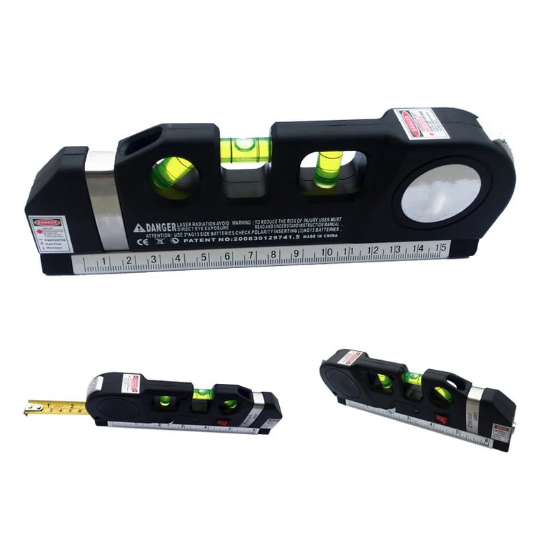 Laser level with a practical measuring tape. The cross indicator can measure, for example, the height of the floor or where to place tiles during a bathroom renovation. To ensure everything is precise and level.