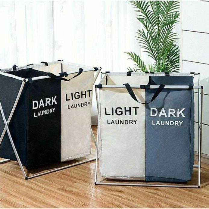 Stylish and practical laundry basket, labelled with the texts 'Light Laundry' and 'Dark Laundry'. It makes sorting individual clothes easier and simplifies washing. At the same time, it looks very elegant and stylish in the home.