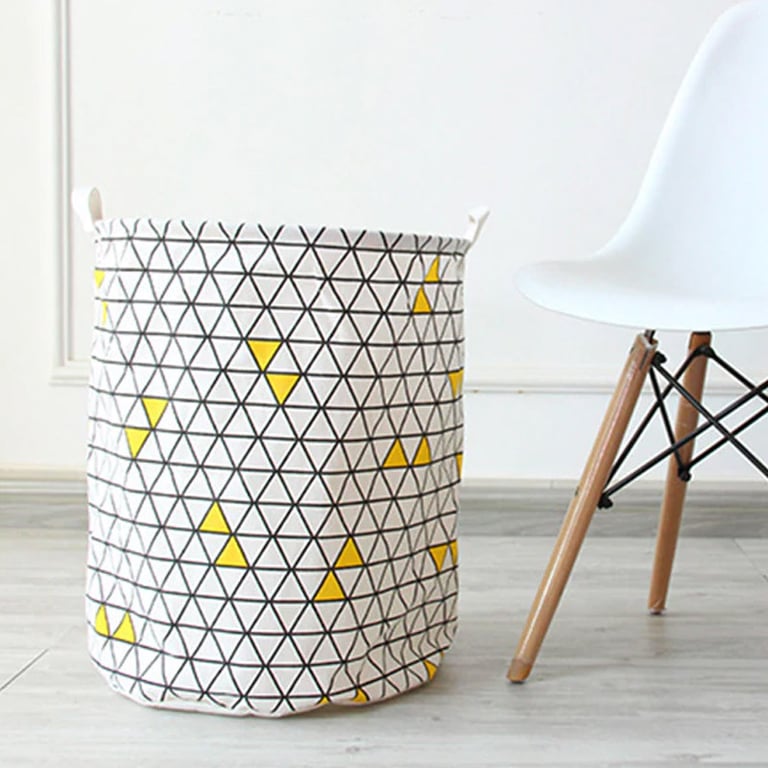 Laundry storage basket. Print with geometric pattern. Two handles for easy carrying.