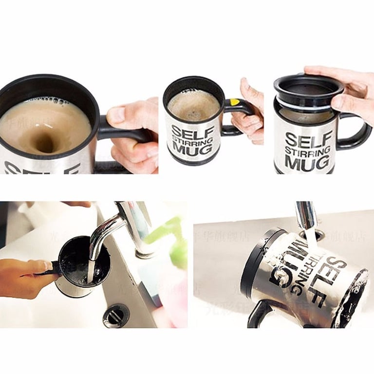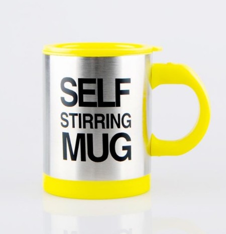 A mug made for all lazy people. Just pour in coffee or tea, press a button, and your drink will mix itself.