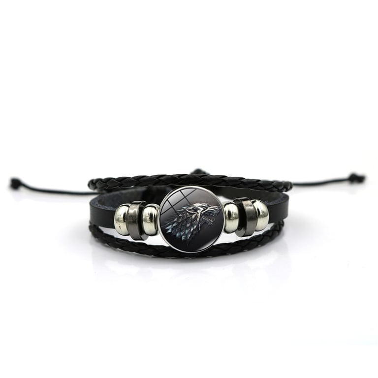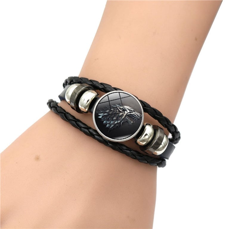 Leather bracelet from the Game of Thrones edition featuring the Stark family crest. The emblem of this house is a wolf's head.