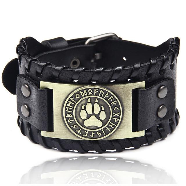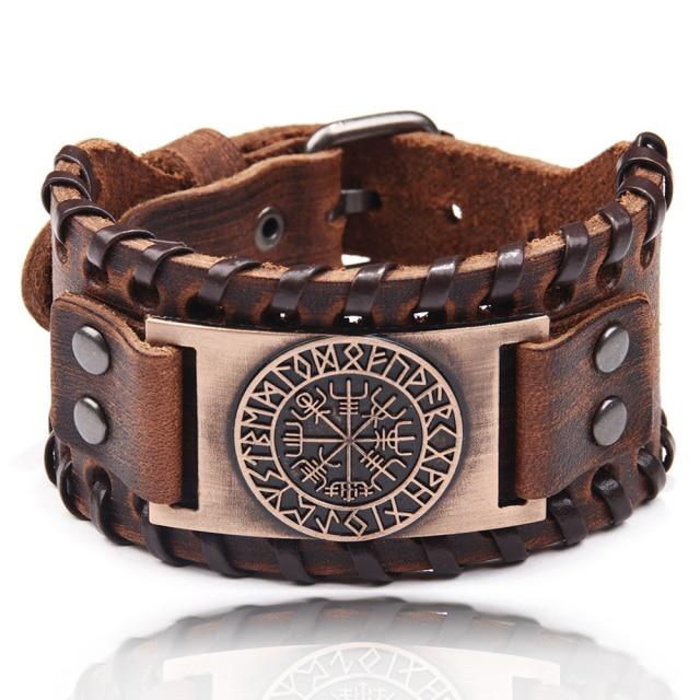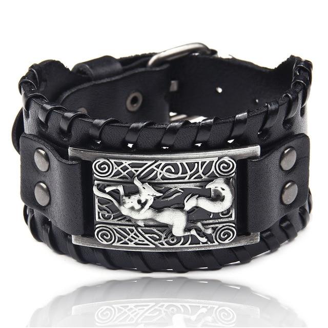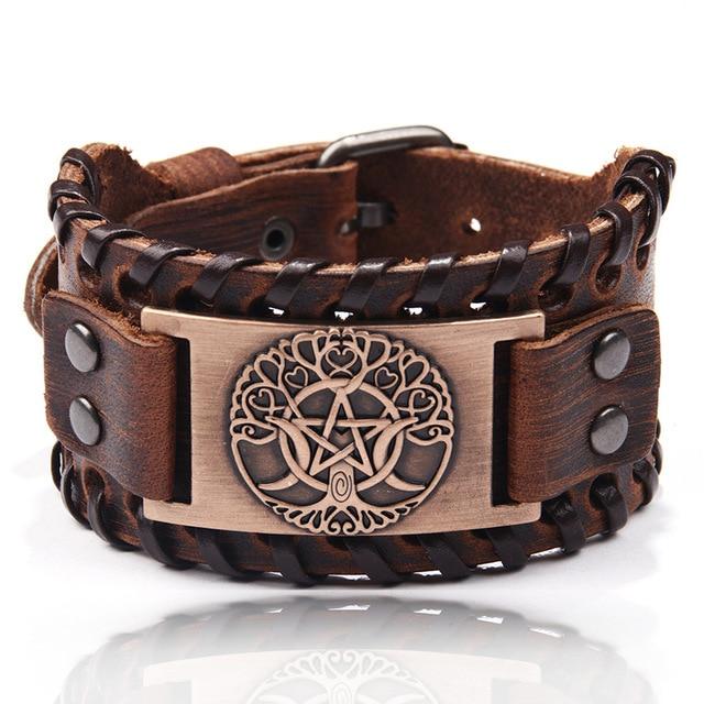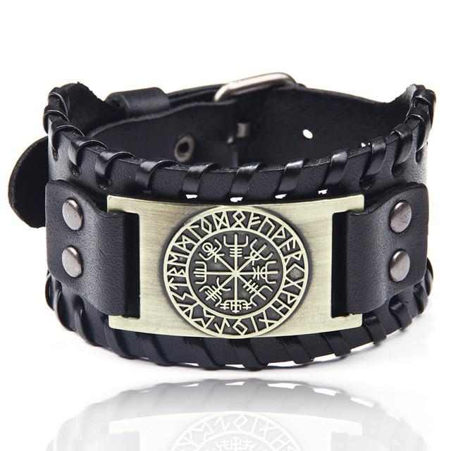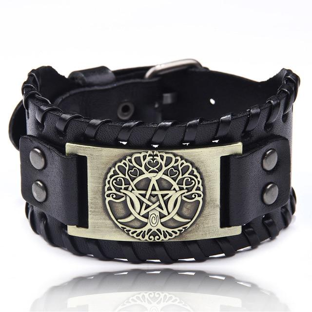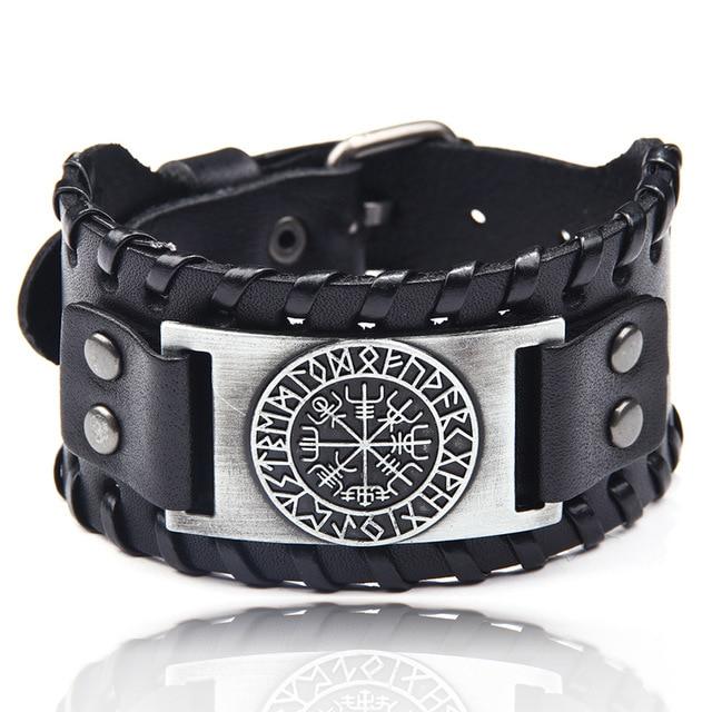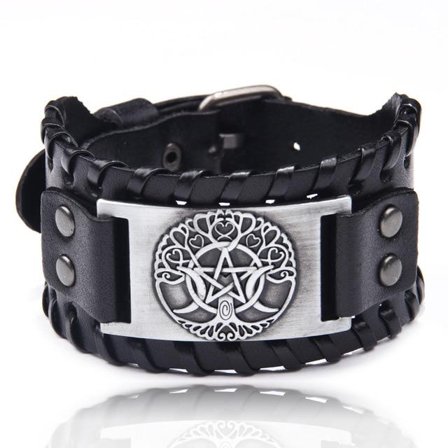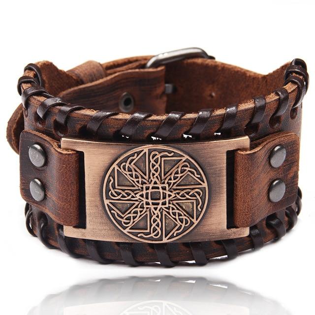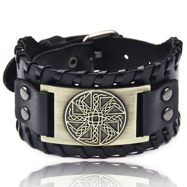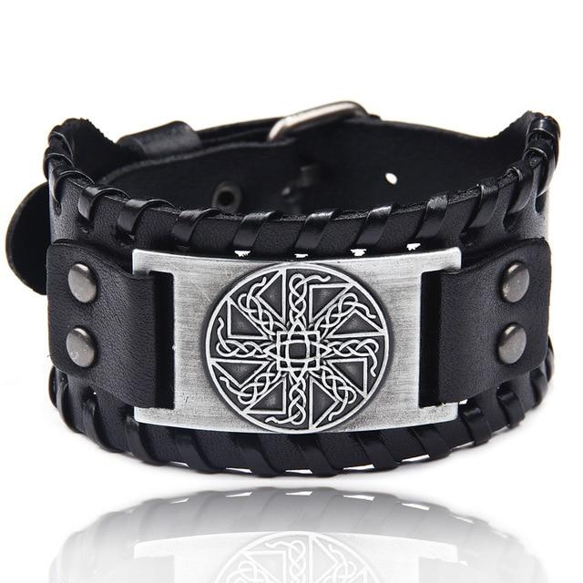 Wide men's bracelet with an ornament. This is a handmade bracelet made from synthetic leather. Beautiful design.