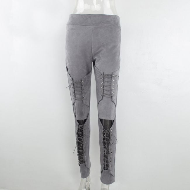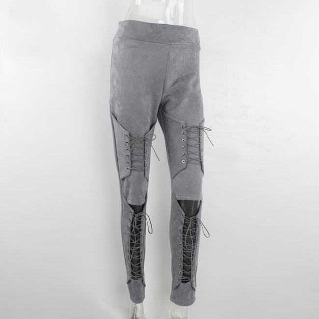 Leather skinny trousers look very sexy – they feature sophisticated lacing on the legs.