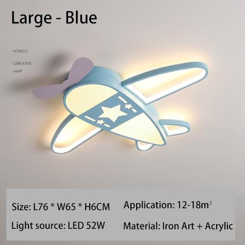 Modern LED ceiling light in the shape of an airplane with remote control. The light can be changed to cool or warm white.