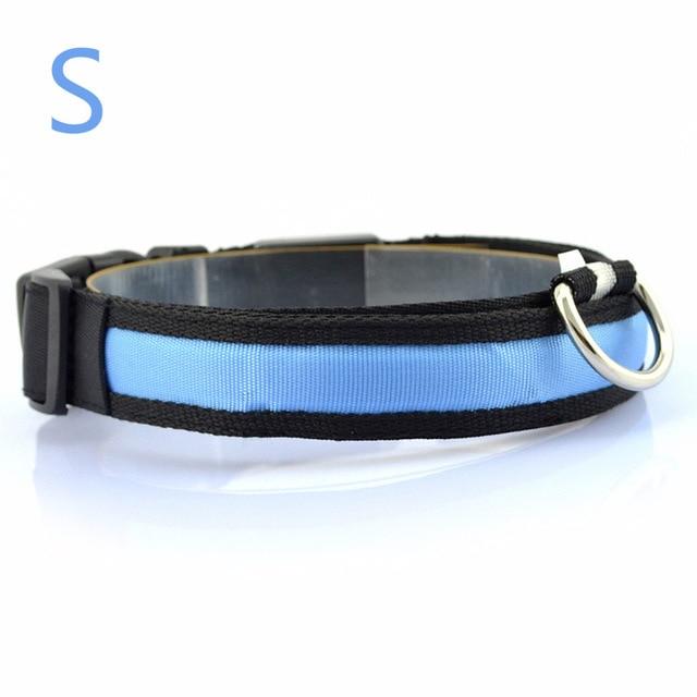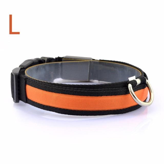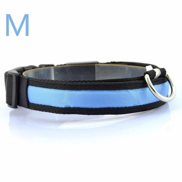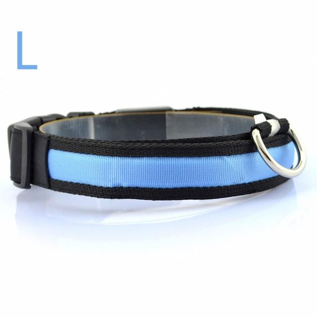 LED collar for dogs. Available in several colours and sizes. The collar is adjustable.