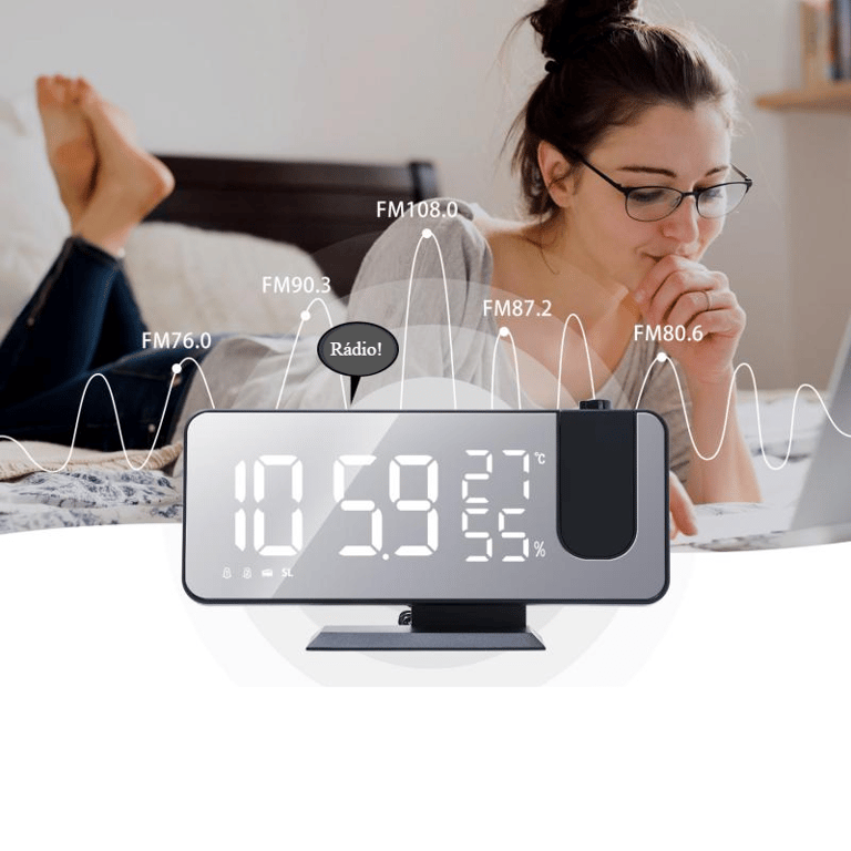 • Alarm clock, radio, LED time projector, temperature measurement, hygrometer and many other functions (manual).