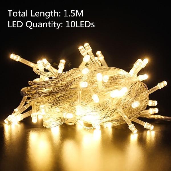 LED light chain suitable for indoor decoration. The length of the chain is 1.5 m.