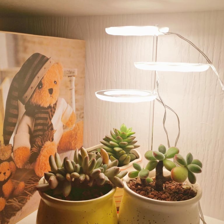 Stylish LED light for houseplants. Lighting that supports plant growth in the form of a circular light. Thanks to its high light output and optimal wavelengths of the LED light source, the lamp promotes healthy plant growth, especially during the winter months or in dark interiors. It emits natural white daylight, so your flowers will look better and feel better too.
