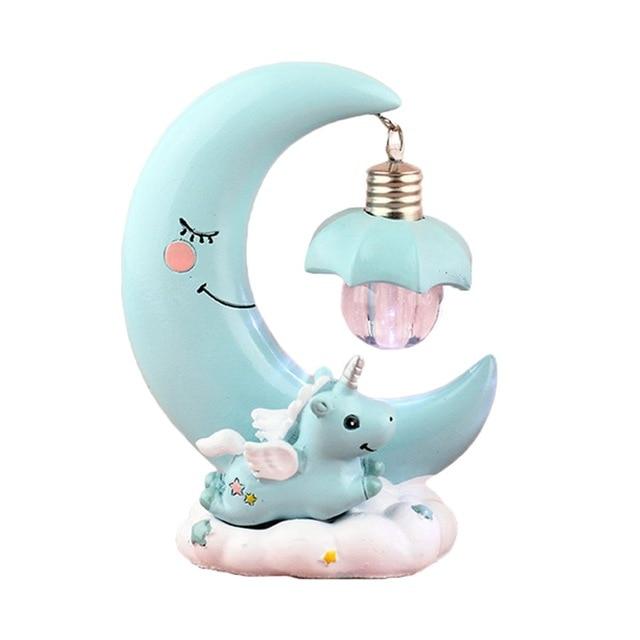 LED lamp for a children's room in the shape of a moon. Available in beautiful soft colours of blue or pink.