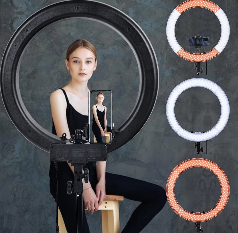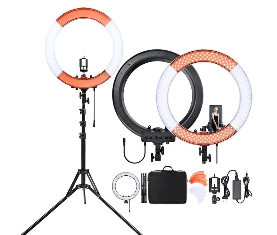 Package Contents: 1x light, 1x stand, 4x orange filter, 4x white filter, 1x adapter, 1x power adapter, 1x mobile holder, 1x bag