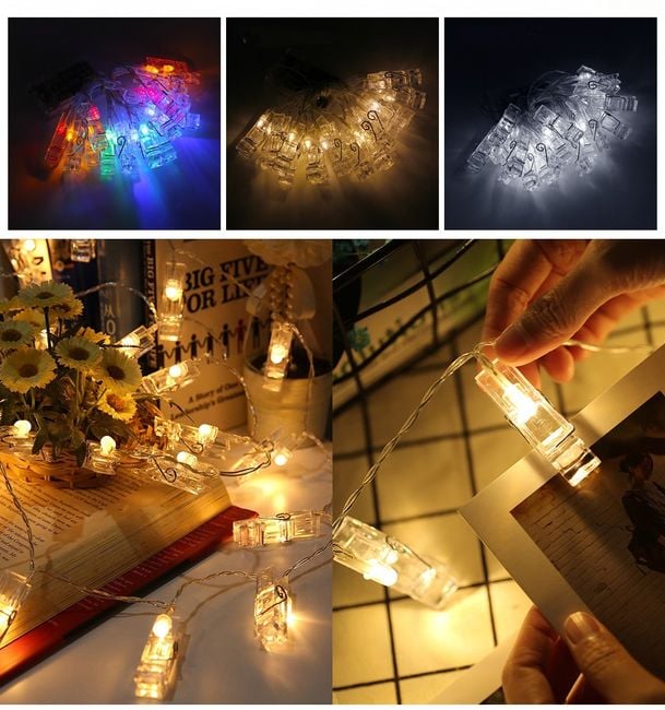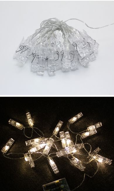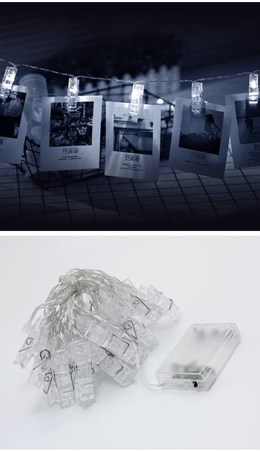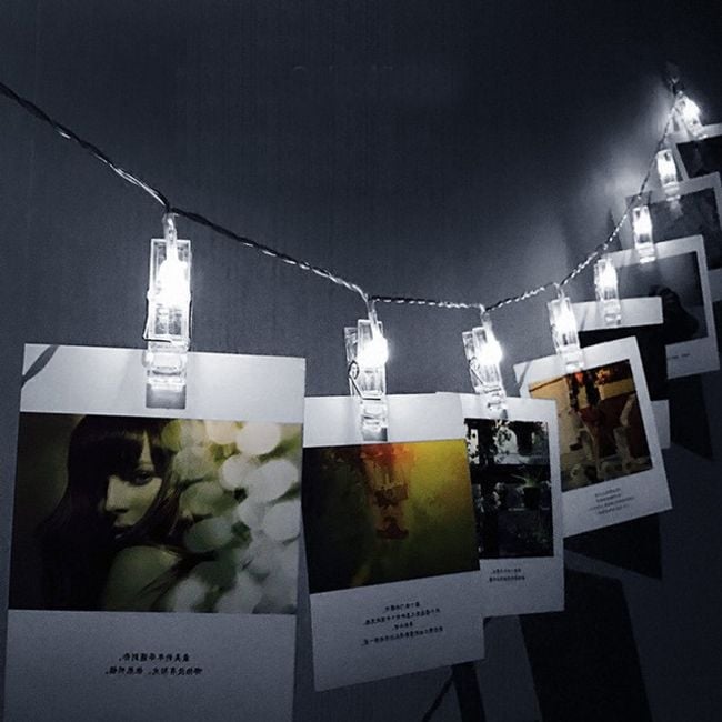 You can hang your favourite photographs capturing moments from your life on the small clips with LED lights.