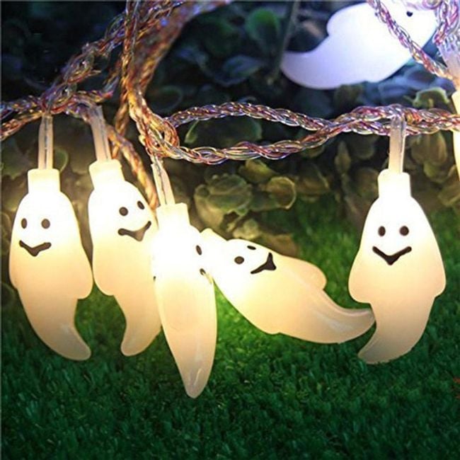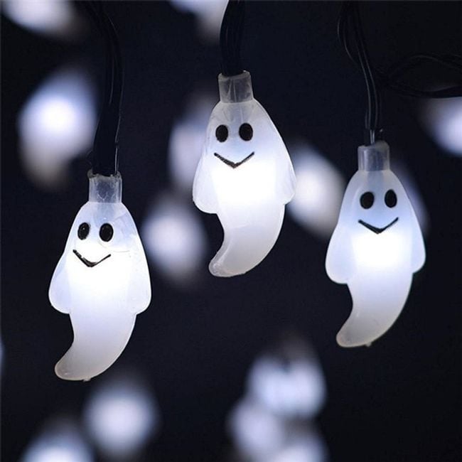 The chain is approximately one and a half metres long and is decorated with plastic ghosts that glow in yellow, white, or rainbow colours. It makes a cute decoration for the home during All Souls' Day.