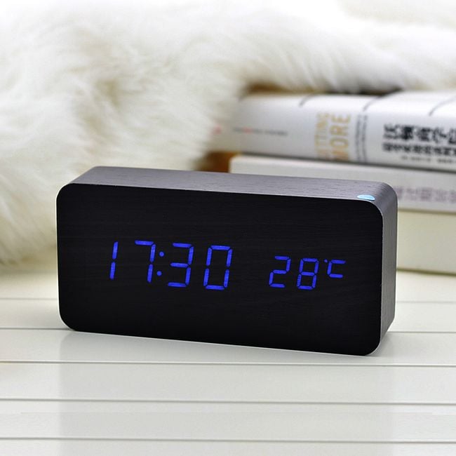 The wooden alarm clock is suitable for any bedside table. You can choose from 5 colours of the digits.