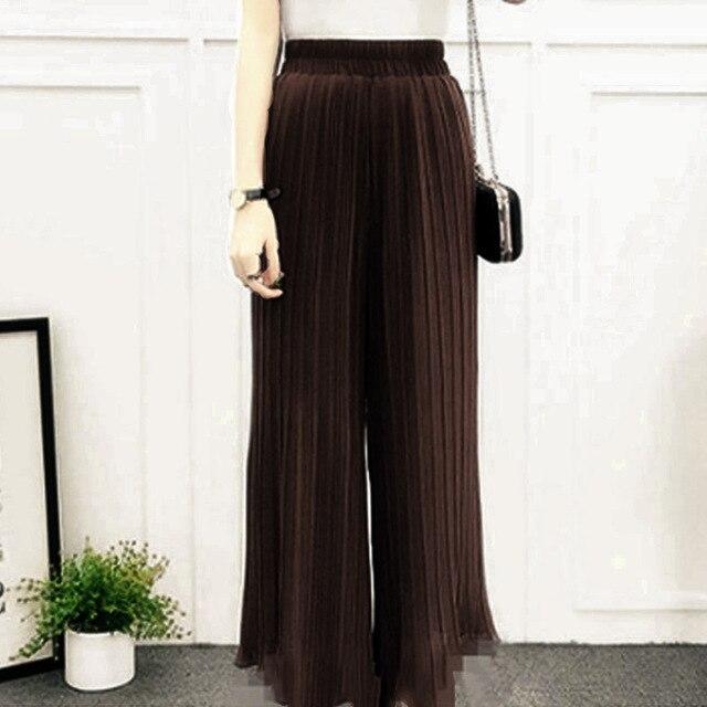 Loose pleated trousers with a high waist and gradually flared legs. The comfort is also enhanced by the elastic waistband.