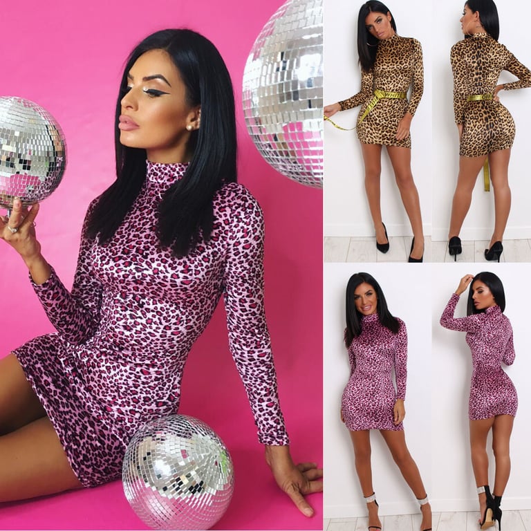 Leopard print women's evening dress with a collar