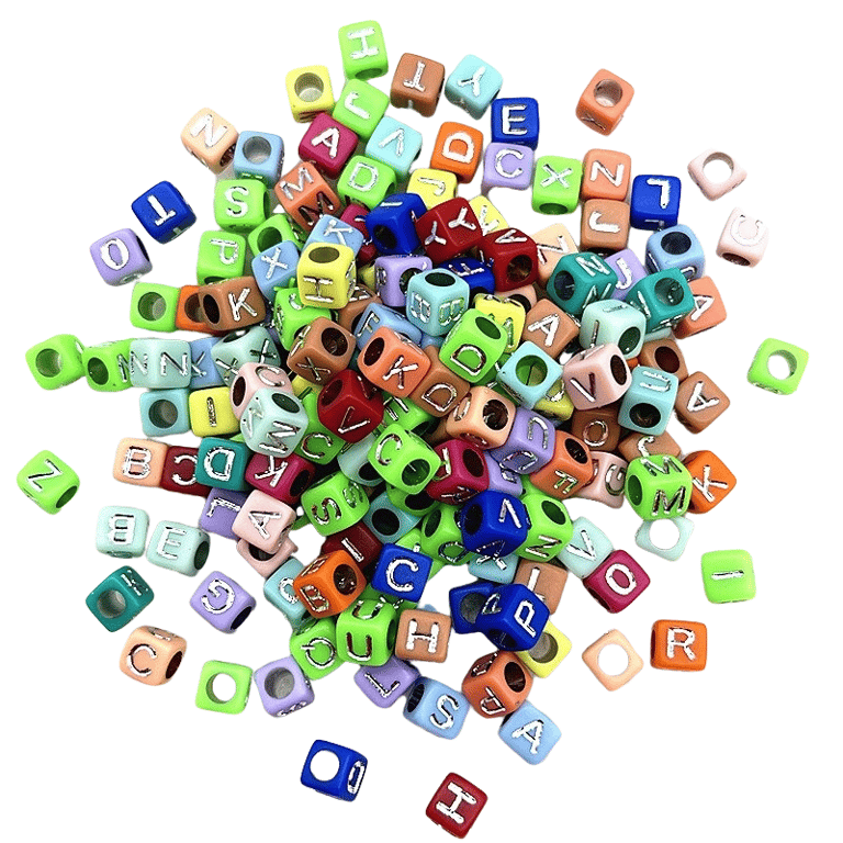 Are you looking for a fun and creative way to make your own jewellery? Check out these stringing beads! This set includes 100 beads in various colours, each with a printed letter. You can combine the beads and spell out words, names, or phrases - it's entirely up to you! The possibilities are endless.