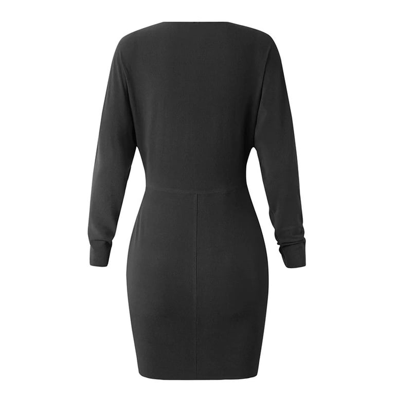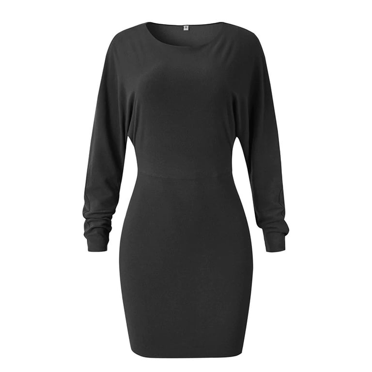 Women's mini dress with a length just below the bottom. The dress features long sleeves and a round neckline. Available in several colour options.