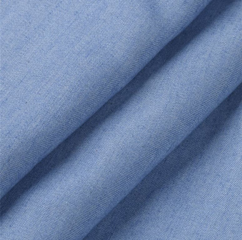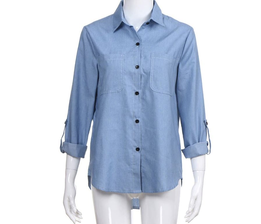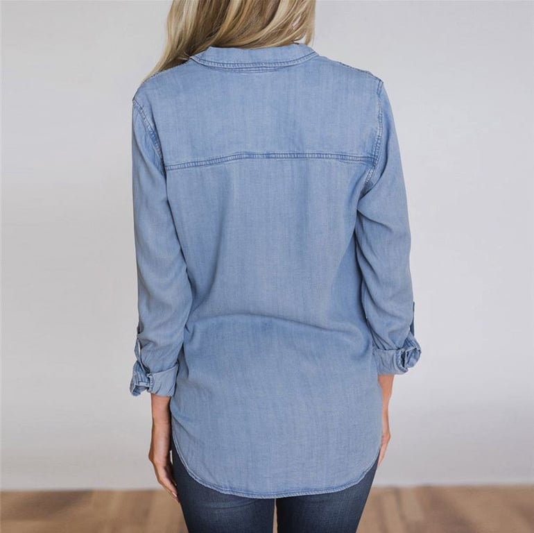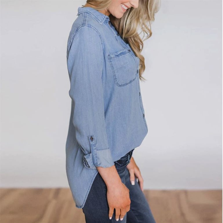Light blue button-up women's denim shirt