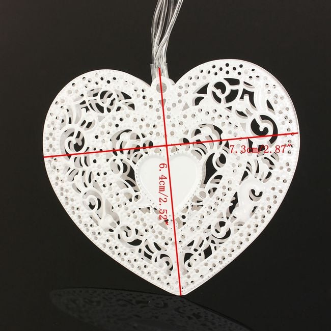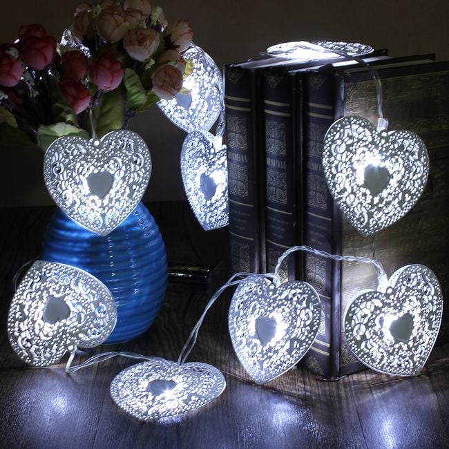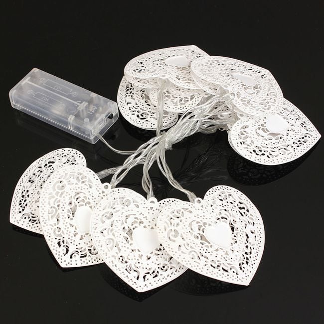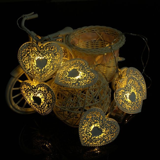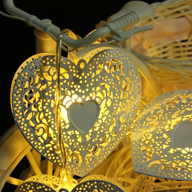 This chain with LED lights in metal hearts is a great decoration for various events. Ideal for weddings, Christmas decorations, dance halls, clubs, etc. You can choose from several lighting colours.