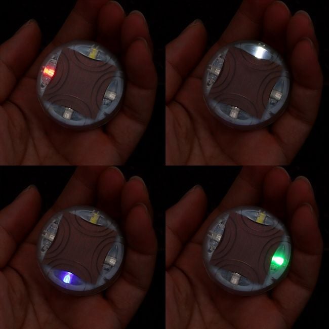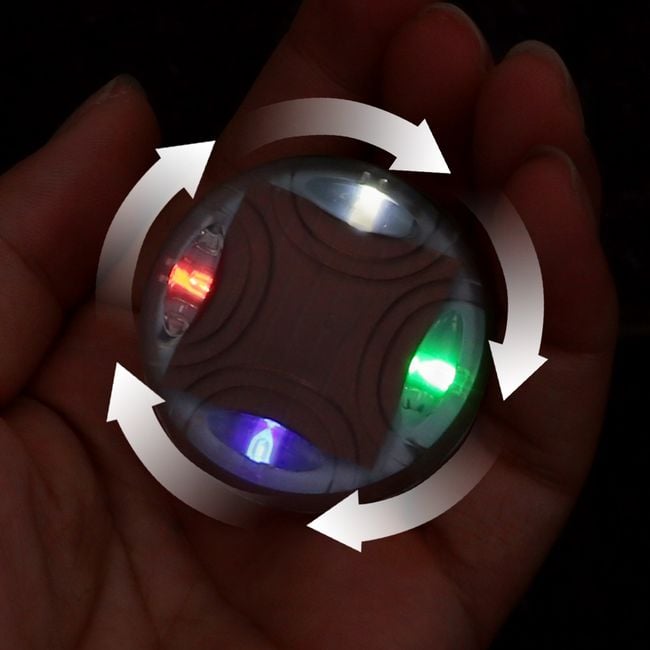 Small LED light that you can attach to a bicycle, car or motorcycle. The light changes colour.