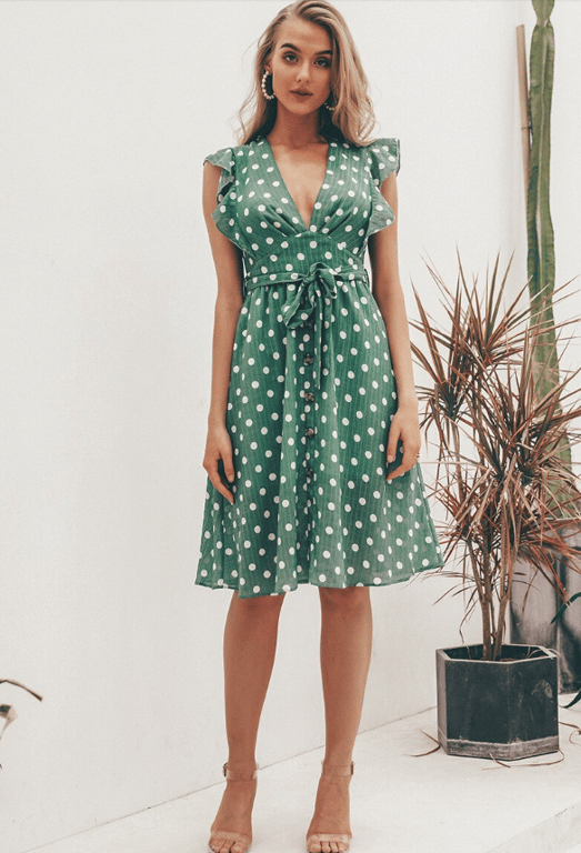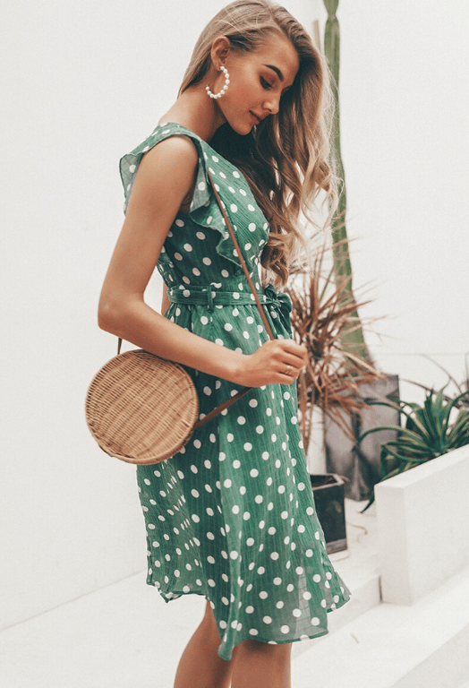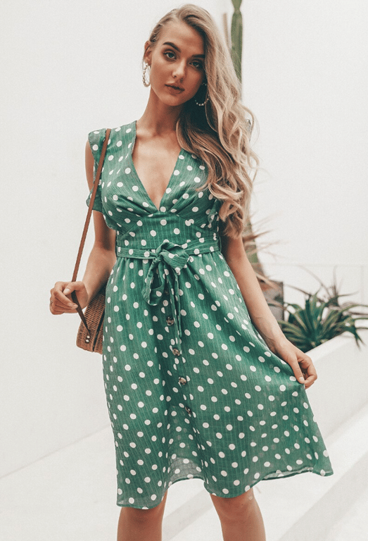 Light green polka dot women's summer dress